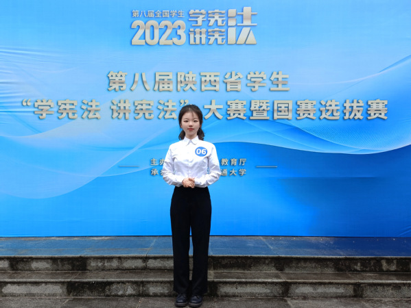 2023年9月24日,大赛在西安交通大学拉开帷幕,共有来自陕西省内110所大、中小学共157名选手参赛。在决赛现场,田嘉仪同学结合全面依法治国、推进法治中国建设的时代背景,运用坚实的法律科学思维和法律专业知识,通过严谨的语言、生动的案例和饱满的热情讲述了自己与宪法的故事,充分体现了taptap188平台学子对宪法的坚定信仰。经过激烈的角逐,田嘉仪同学荣获第八届陕西省学生“学宪法 讲宪法”大赛高校组二等奖。
