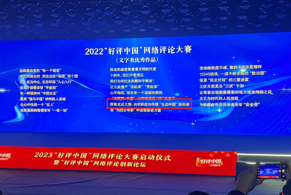 近日,2022“好评中国”网络评论大赛颁奖仪式在湖南长沙举行。我院学生郭文苑和其指导老师苏蕾的评论作品《野象北迁之旅:向世界成功传播“生态中国”新形象》荣获“文字类”优秀作品。