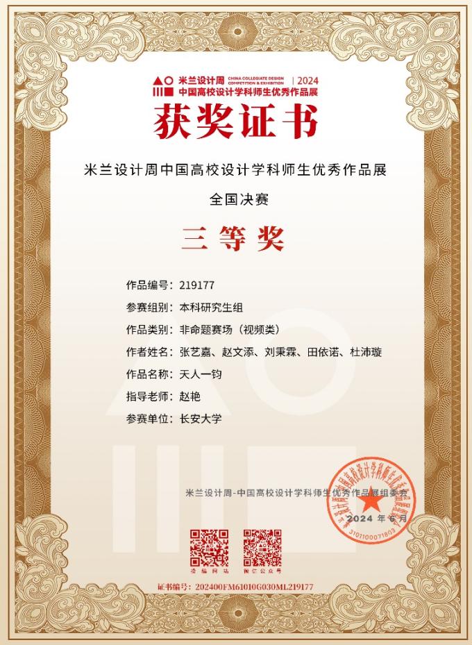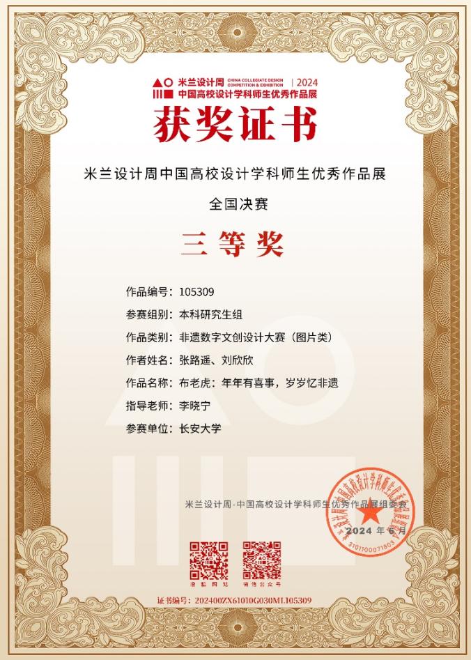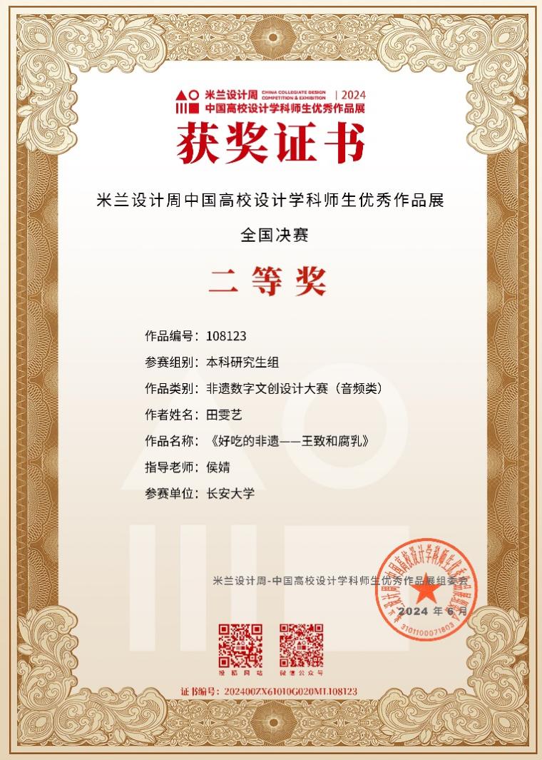近日,第八届米兰设计周-中国高校设计学科师生优秀作品展落下帷幕,taptap188平台师生成绩斐然。由广播影视系侯婧老师指导的广播剧《好吃的非遗—王致和腐乳》(作者:2023级艺术专硕田雯艺)获国家二等奖;广播影视系赵艳老师指导的纪录片《天人一钧》(作者:2021级广播电视编导张艺嘉、赵文添、刘秉霖、田依诺、杜沛璇)、广告学系李晓宁老师指导的文创设计作品《布老虎:年年有喜事,岁岁忆非遗》(作者:2022级广告学张路遥、刘欣欣)分获国家三等奖。