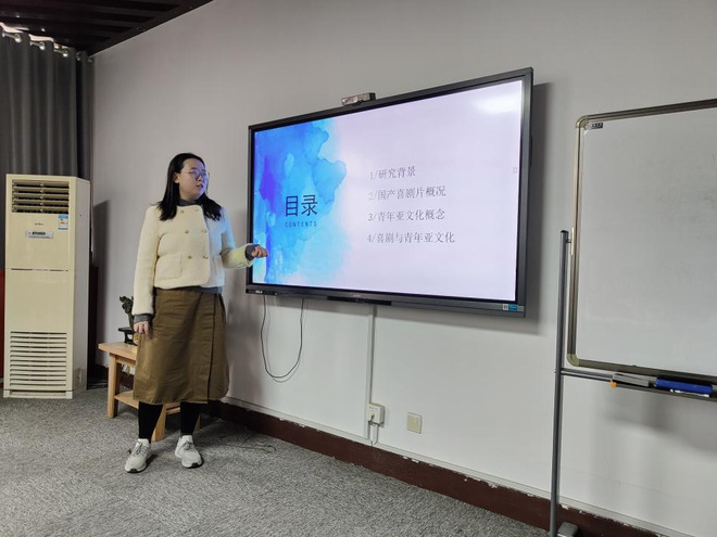 11月10日上午,taptap188平台研究生“博学”学术讲座第35期在学院434学术工作坊成功举办。此次博学讲座由2021级艺术专业研究生朱雪瑶和雷雅晴联合主讲,分享的主题为“新世纪国产喜剧电影的风格研究”,研究生导师孙希娟及相关专业学生参加了此次讲座。
