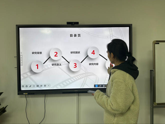 董丽云同学从社会学角度解读新主流电影新变。她首先指出艺术研究中,无论对象是艺术现象、艺术作品,还是艺术定义和属性,都离不开跨学科视角。不同学科视角之间都可以相互补益,某个学科难以解决的问题,其他学科可能很容易解決。因此,不同学科视角之间应形成一种对话关系,这样才能推动对艺术更全面的认识和更深入的理解。这是国内艺术学理论学科发展的必由之路。接着她探讨了社会与电影的关系,结合《我和我的祖国》《我和我的父辈》《满江红》等优秀新主流电影,从社会学角度分析新主流电影在叙事、人物、传播的新变化。