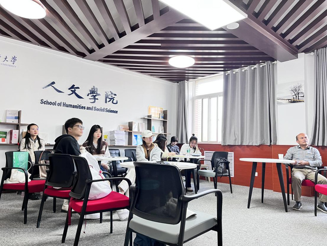 接着,留学生灵光具体介绍了《组织行为学——基于公共管理领域》这本书。该书是由我校教师王景荣和赵晓妮共同编撰而成。组织行为学是管理学科中的一门主干课程,该书从微观到宏观,从“个体行为”“群体行为”和“组织行为”三个层面依次展开叙述。主要包括:个体差异、社会知觉与归因、价值观与工作态度、工作环境中的激励、工作设计和工作压力管理;群体行为、团队、沟通、领导; 组织结构设计、组织变革与组织学习等内容。灵光认为,该书文字表述比较贴近学生思维和生活,力求内容的实效性和阅读的趣味性,同时聚焦前沿动态,链接相关资源,以“行为聚焦”和“拓展阅读”的形式呈现出来。