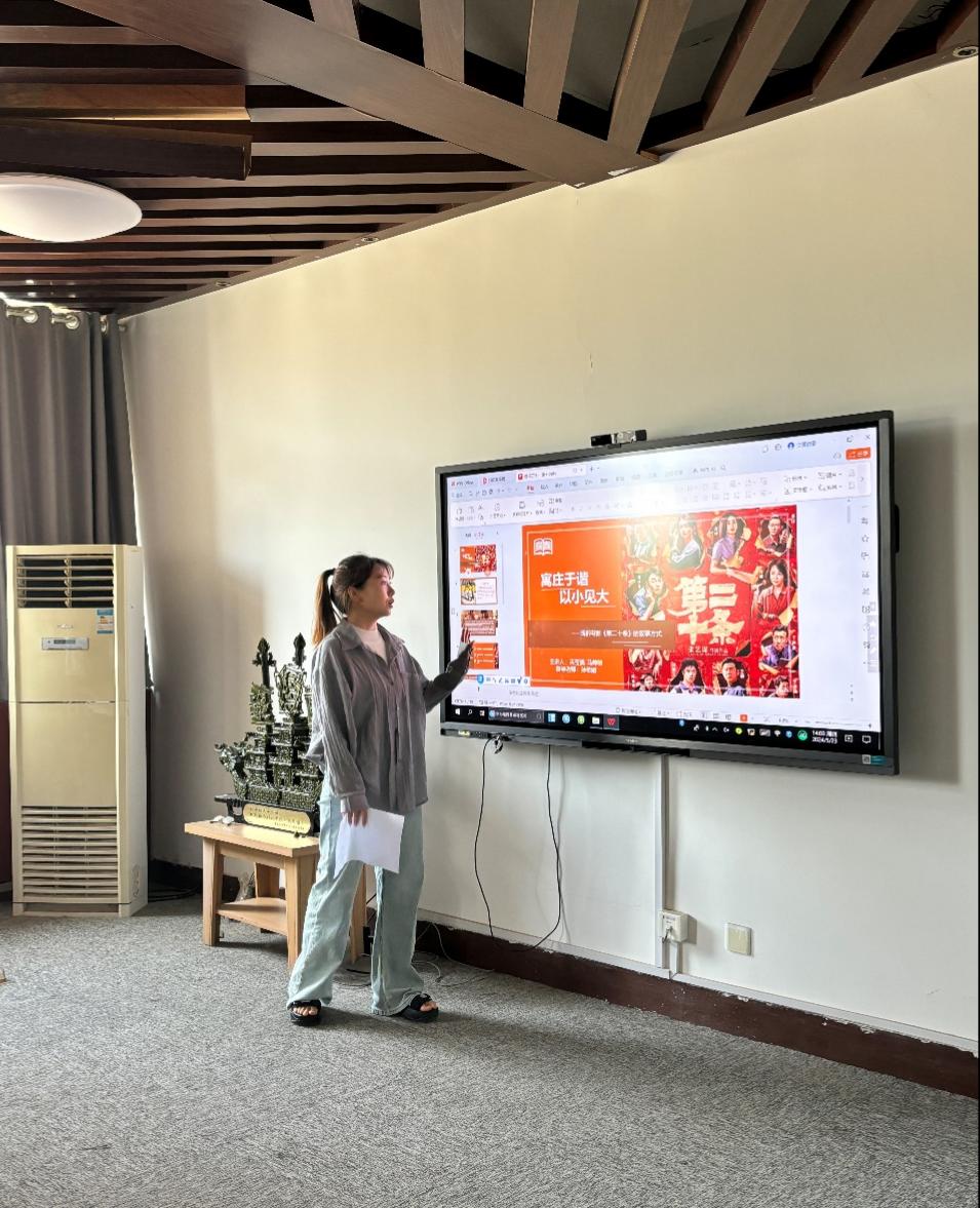 马帅帅首先对“寓庄于谐”进行了解释,指出了在喜剧中“庄”与“谐”处于辩证的统一。现在电影、电视这两门新兴艺术作品当中,“寓庄于谐”也被广泛使用以增强电影的艺术表现力。她通过对电影《第二十条》的分析来探究“寓庄于谐”这一手法在影视作品中的具体运用。