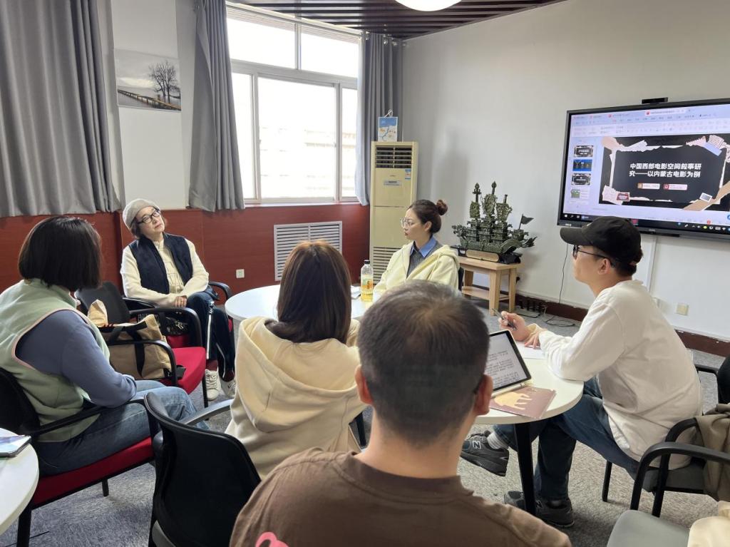 首先,马娟娟进行了题为《中国西部电影空间叙事研究——以内蒙古电影为例》的学术分享。她以内蒙古电影其得天独厚的自然空间为切入点,阐述了浩翰的戈壁滩、无垠的大沙漠、雄伟的内蒙古高原,以及黄河中上游地区人民豪放粗犷的性格和富有传奇色彩的生活。她紧接着讲解了这些元素如何构成了西部电影独特的叙事优势,揭示了西部电影中内蒙古电影独特的地域文化和历史底蕴,通过空间叙事风格展现出来。