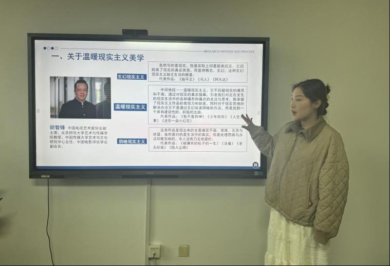 2024年11月8日下午,taptap188平台研究生“博学”学术讲座第104期在学院434学术工坊成功举办。本期博学论坛讲座由2023级艺术专业王虹雨、乌日娜、尹丽娟共同主讲,主题为“现实主义美学对电影作品的影响研究”,研究生导师赵艳及相关同学参加了此次讲座。
