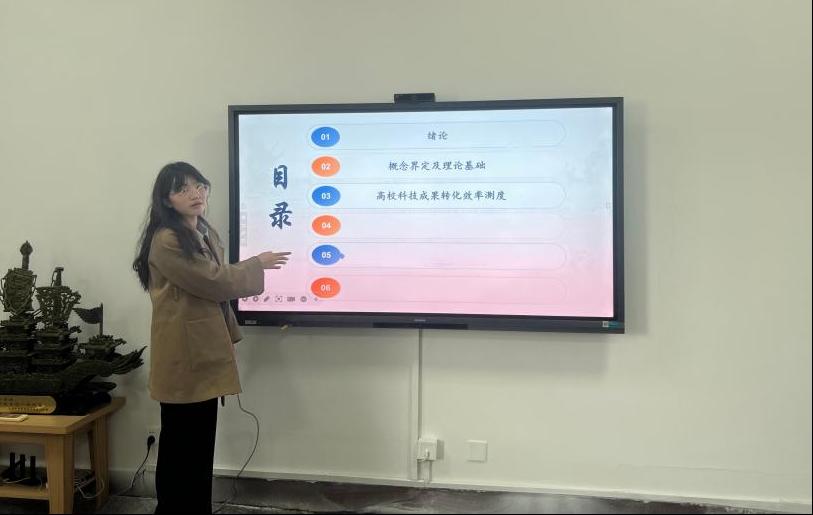 王丹以“高校科技成果转化政策工具对实施效率的影响研究”为议题,围绕现行高校科技成果转化政策是否能够有效促进效率提升,不同维度政策工具支撑下的高校科技成果转化效率是否存在差异性等问题展开。在测算效率以及政策工具使用现状的基础上,她借助固定效应将政策工具与效率置于同一模型中展开实证分析,得到政策工具影响效率的作用效果、作用路径、作用条件、作用对象。最后,她从政策设计和政策实施两方面提出相关优化建议。