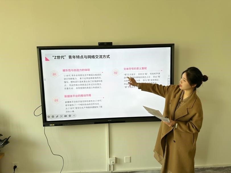 谭文星分享的主题为“互动仪式链视域下网络热梗的产生与传播——基于“Z世代”的分析”。谭文星认为,网络热梗作为“Z世代”青年互动与表达的产物,不仅体现了“Z世代”青年的创造力与幽默感,更成为他们共享文化趣味、维系群体认同的重要符号。由此,她基于柯林斯的互动仪式链理论,深入探讨了“Z世代”青年如何通过创作、分享和讨论网络热梗,在互动中因共同的关注焦点与相同的情感状态形成独特的圈层文化和认同,同时也因玩梗带来的正向反馈进一步促进了网络热梗再创造与再传播,形成了一个紧密的互动仪式链。最后,谭文星探讨了网络热梗流行背后存在的问题,并倡导大家在享受网络热梗带来的乐趣的同时,应该保持独立思考和批判性思维,注重内在的成长和深度挖掘。