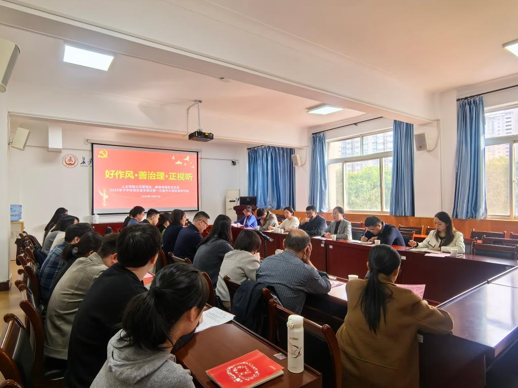 公共管理系主任王灿友同志作党建工作专题汇报。他首先系统介绍了公共管理系教师党员队伍构成与基本状况,详细阐述了支部与系所协同加强党建工作的具体举措与创新实践。结合近期重点工作案例,王灿友同志讲述了支部建设的基本经验与显著成效,并对下一步深化党建与业务融合、提升党建工作质量的前景与路径进行了科学展望,展现了党支部推动事业高质量发展的坚定决心。