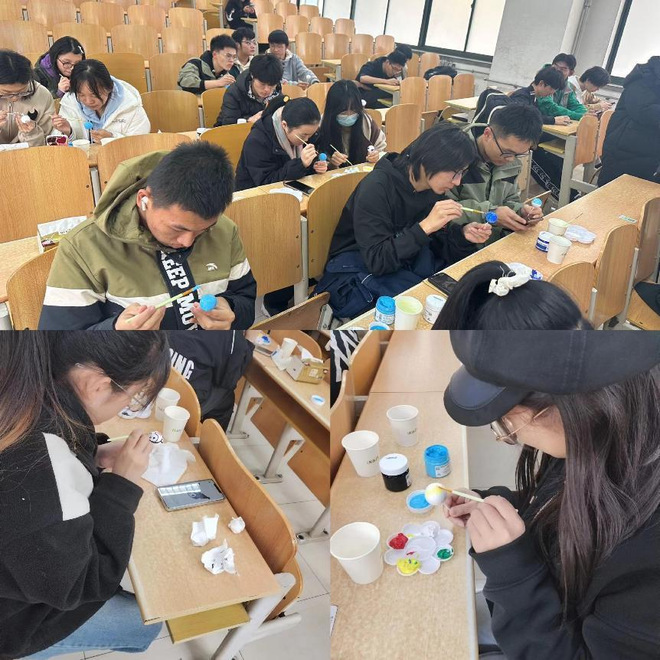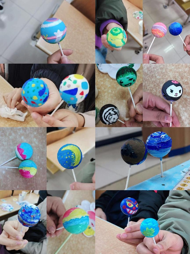 活动中,同学们积极参与,发挥想象,利用现场提供的颜料、笔刷等工具,用色彩描绘白色的“星球”,创作属于自己的独一无二的小世界。同学们的创作涵盖了最喜欢的卡通角色“酷洛米”、人生的美好愿望、当下的心情状态等多个主题,在小小的星球上刻画丰富的内心世界。创作过程中,同学们互相交流创意、分享心得,于无形中剖析自我、释放压力,收获了满满的成就感和愉悦感。