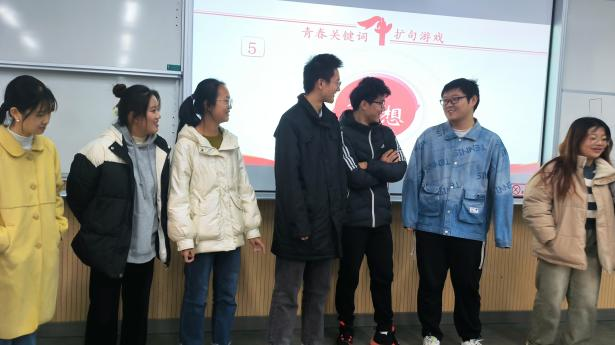 紧接着,同学们通过寓教于乐的扩句游戏,探寻青春关键词,理解了新时代好青年“有理想、敢担当、能吃苦、肯奋斗”的四项标准。在识曲游戏环节,透过《年轻的朋友来相会》《我们都是追梦人》等反映不同年代青年面貌的歌曲,同学们体会到一代人有一代人的长征,新时代青年要在中国式现代化建设中挺膺担当。