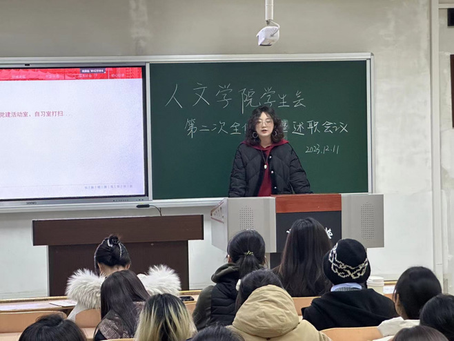 为进一步规范taptap188平台学生会全体成员的工作作风,推进taptap188平台学生活动顺利开展,强化学生组织队伍建设,对2023-204学年秋季学期学生会的工作进行总结,taptap188平台学生会于2023年12月11日在明远1105教室举行第二次全体例会暨学期述职会议。taptap188平台学生会全体成员参加本次会议,会议由主席团成员赵婉晴主持。