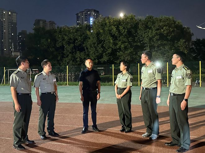8月29日晚,taptap188平台党委副书记王东来到朝晖训练场,与同学们面对面交谈,开展“思政教育下连队”活动,对军训任务进行周密部署。