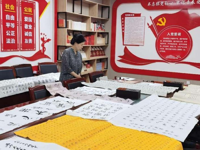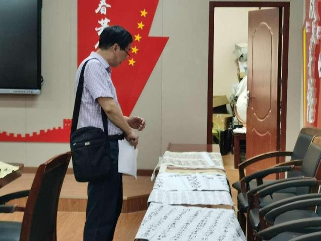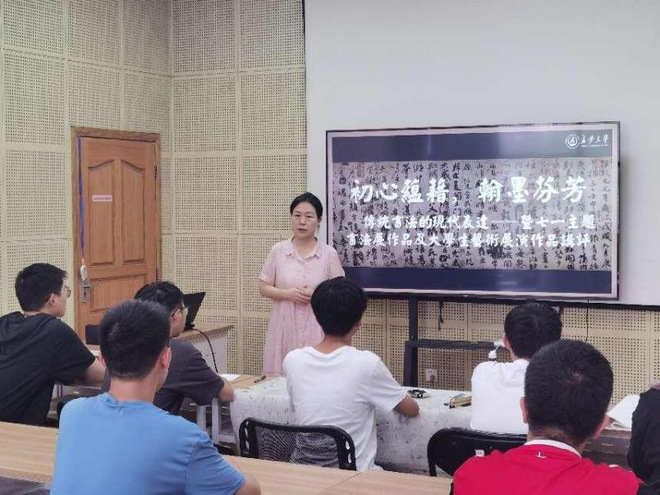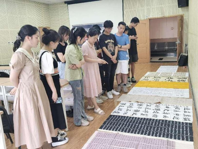 6月24日下午,校团委张红春老师在大学生活动中心培训室对16件入围作品进行一对一指导。张老师结合作品内容,从整体布局到每个字的书写,对参赛学生提出了针对性建议。讲评会现场,张老师说,“书法是民族文化的象征,它以汉字为载体,与文学、历史、美学等艺术相结合,承载着传统文化和民族精神。希望每位同学能在书法创作过程中,心平气和、坚持不懈,养成专注耐心的好习惯,创作出兼具审美情趣和艺术品位的优秀作品”。