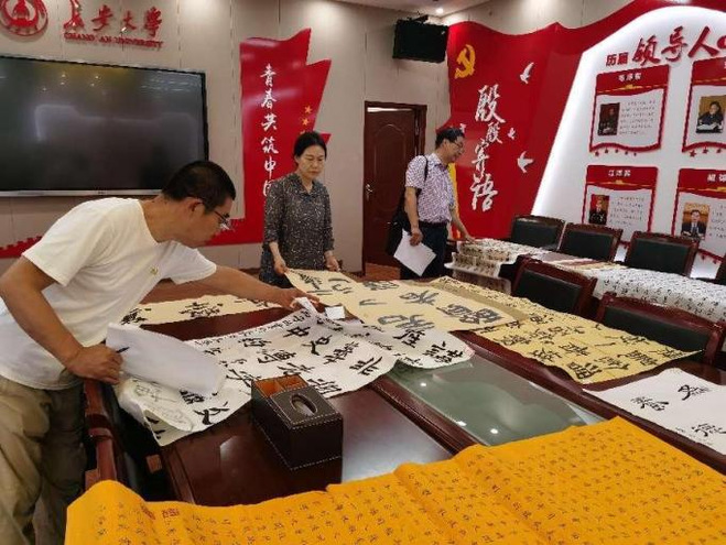 6月19日下午,校内评审工作在188改名taptap北校区大学生活动中心党建工作室开展,活动邀请校团委张红春老师、艺术教育中心李东飚老师、taptap188平台彭砺志老师对50余副参赛作品进行线下评审。本次征集的书法作品包括了篆、隶、楷、行、草书,书写门类齐全,书写水平普遍较高。评审现场,评委们本着公平公正的原则,结合“厚植家国情怀,涵养进取品格”省赛主题和要求,对每一副作品内容、形式、笔锋等进行评审,最终推选出了16件作品进行再次创作与加工。