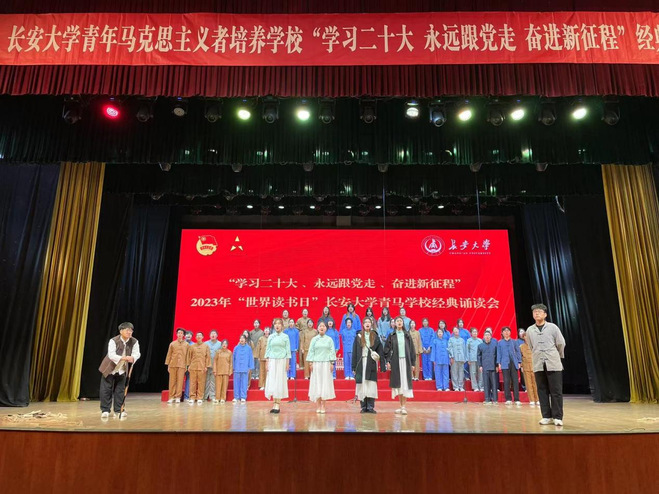 4月23日晚,主题为“学习二十大、永远跟党走、奋进新征程”的188改名taptap青马学校经典诵读会在渭水校区长安文化艺术中心顺利开展。taptap188平台青马班同马克思主义学院青马班带来的《天路》主题朗诵节目顺利演出,并荣获三等奖。
