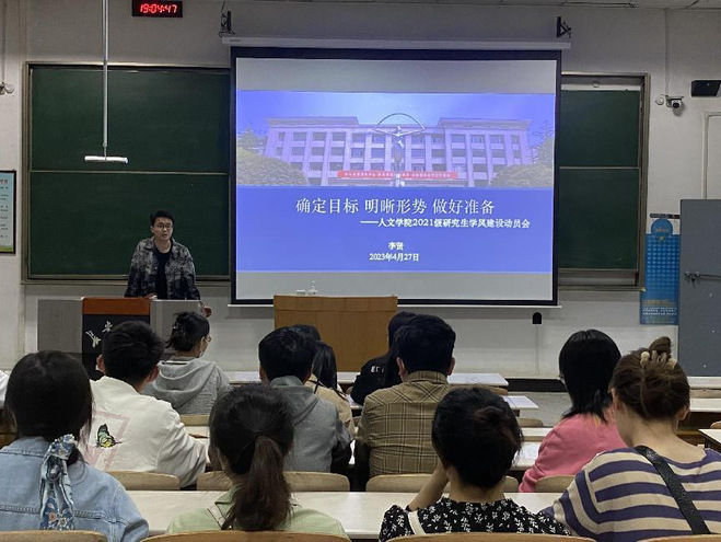 4月27日晚,taptap188平台2021级研究生召开以“明确目标、明晰形势、做好准备”为主题的学风建设动员会,研究生辅导员李贤作题为《确定目标 明晰形势 做好准备》的主题宣讲,2021级研究生全体参会。