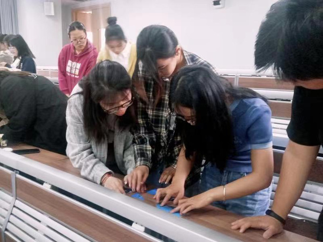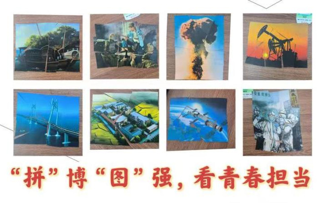 随后,同学们追根溯源,在《觉醒年代》片段配音活动中回顾了五四运动的历史。四位同学的精彩演绎与全体同学的默契配合,奏响了一曲爱国篇章。接着,同学们通过游戏“拼”博“图”强,透过港珠澳大桥等图片领略了青年们在革命抗战、社会主义建设和改革开放等各时期体现的责任担当。