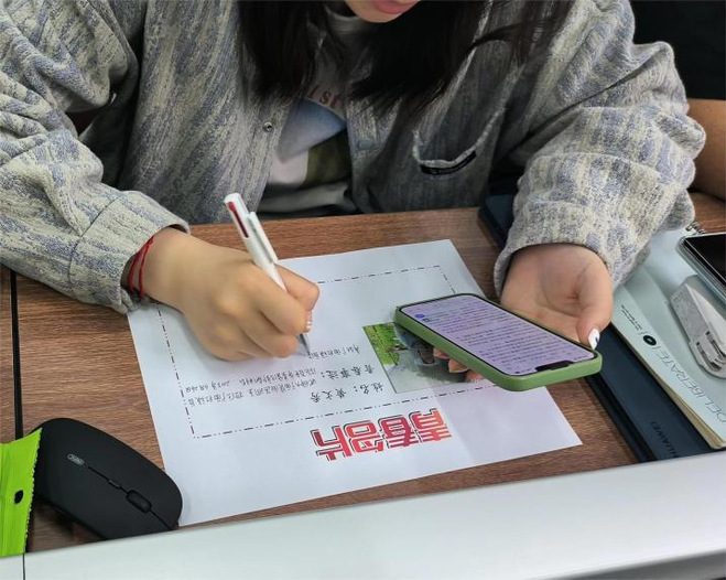 最后,同学们以小组的形式,了解王亚平、杜富国、苏翊鸣和黄文秀四位青年榜样的青春事迹,绘制了他们的“青春名片”,领悟到新时代青年要以爱国为前进动力,以奋斗为靓丽底色。