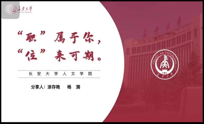 “职”属于你,“位”来可期。为增强学生的生涯规划与职业发展意识,引导学生树立正确的就业观、择业观,taptap188平台研究生会于4月18日晚上九点在线上举办了职业类分享活动。此次活动由 19级新闻与传播专业的涂存艳学姐和19级美学专业的杨漪学姐担任主讲人,taptap188平台全体研究生同学共同参与。