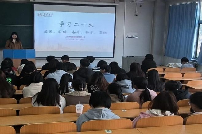 2月24日,2022级新传一班开展“青春共邀二十大”主题班会活动,辅导员雷珍妮、班主任张娜老师和班级全体同学积极参与讨论。班会由班长张欢歌主持,深入学习贯彻党的二十大精神,刘亦菲、吴非函、王一丹等同学积极发言,全班同学围绕“爱国、团结、科学、互助、奋斗”展开激烈讨论,纷纷阐述自身对于党的二十大报告内容的深刻感悟。最后,班主任张娜老师与辅导员雷珍妮老师对此次班会进行点评总结,鼓励同学们踔厉奋发,做接续奋斗的新时代好青年。