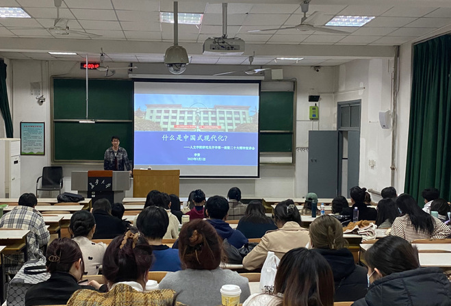 本次研究生“开学第一课”由辅导员李贤主持,李贤老师以“什么是中国式现代化”为题,与全体2022级研究生共同学习了党的二十大报告中关于中国式现代化的内容。李贤老师指出,中国式现代化是一个动态的过程,并从中国式现代化的定义、特征、实现路径等方面向与会学生阐述了中国式现代化的内涵与独特性,让与会学生受益匪浅。