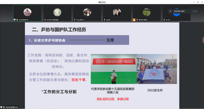 院学生会主席团成员朋兴华详细介绍了学生会的工作职责,认为班干部作为学生骨干,应该诠释好“敢为人先,甘为人后”的“公仆”角色,保持谦卑、服务同学,同时应当不断提升个人能力,发挥榜样作用。