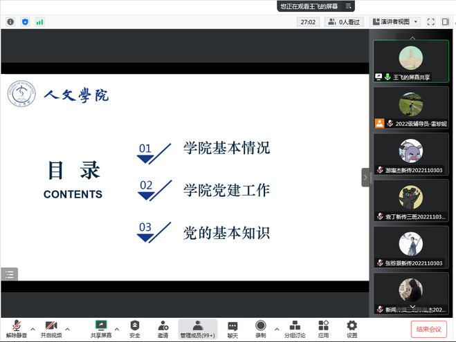本次讲座主要包含学院基本情况、学院党建工作、党的基本知识三部分内容。王飞老师首先从taptap188平台历史沿革、学院简况、本科专业及硕士学位授权点等方面展示了学院的基本情况。