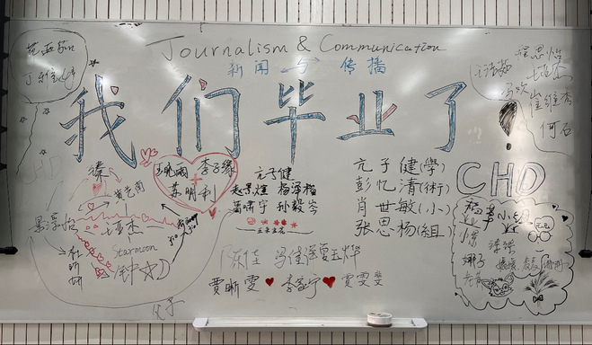 夏日骄阳,别情依依。欢送会伊始,系主任崔慎之老师代表全系老师表达对2022届新闻学专业毕业生的殷切祝愿和期许,寄语即将踏上人生新征程的新闻学子们在后疫情时代提高自身竞争力,敢于拥抱不确定的未来,通过“三爱”——爱上一项运动以强健身心、爱上读书以拥有终生的良师、爱身边的人以构筑内心与环境的和谐,并期待大家在未来随时分享自己的工作与生活。成茹老师寄语毕业学子在未来的人生道路上顺利健康,一切和美。张娜老师从自身经验出发,提醒同学们不要被生活消磨掉热情,无论遇到什么困难,要做一颗百折不挠的小草。王琛元老师强调不要抛弃少年时代的梦想,要在寻找自己、热爱自己、成就自己的过程中建立自我认同。之后,老师们和学生座谈、合影留念,同学们向各位老师积极分享自己的工作计划并表达对母校的留恋之情。