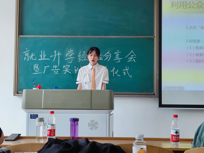 6月7日上午,taptap188平台广告学系在北校区鸿远2207教室成功举办了就业升学经验分享会暨广告实训启动仪式。本次活动作为校团委青春长大第二课堂系列活动之一,开启了线上参与通道,其他专业同学均可线上参与。本次活动由2019级广告班组织,广告学系全体教师、同学参加,会议由2018级梁泽龙同学主持。