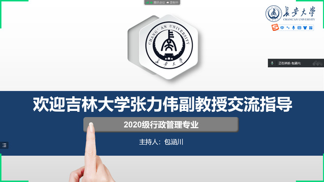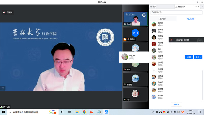 2022年6月8日,吉林大学行政学院张力伟副教授莅临我校进行交流指导,与2020级行政管理专业的本科生进行了线上深入交流,该活动由2020级行政管理班主任包涵川主持,系主任常莉副教授进行了点评。