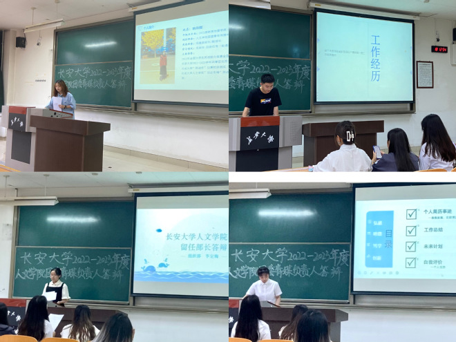 答辩开始后,各答辩人依次上台发言,就个人本年度的工作总结、竞争优势以及对未来工作的展望等方面展开答辩。各评委也根据同学们的答辩内容进行提问,并给出了宝贵的意见和建议。通过本次答辩,竞选者们展现了自己优秀的能力,表达了对工作的独到认识,展现了我院学子的青春活力和良好的精神风貌。