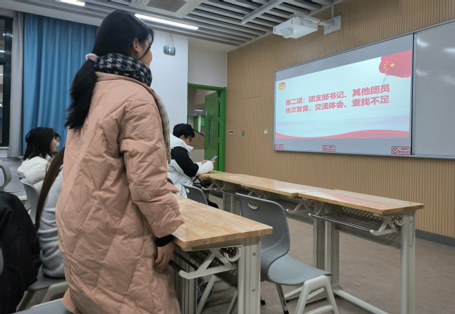 会议伊始,团支部书记陈怡莲向与会团员汇报了团员和青年主题教育的开展情况,总结了支部在团日活动、支部建设等方面取得的成绩。支委会成员指出了目前工作存在的不足,并提出了对下一年度工作的建议。随后,每位团员根据学习教育情况和所准备材料进行自我评价,交流了个人本年度在学习与工作方面的心得体会。其他团员对发言的团员进行了评议,既肯定了其取得的成绩,也诚恳地指出了不足之处。