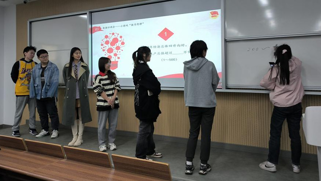在小游戏“数字炸弹”环节,同学们直观了解了政府工作报告中关于2023年国家发展成就的具体数据,体会到了这些亮眼数字背后的艰辛付出,进一步增强了对未来发展的信心与底气。