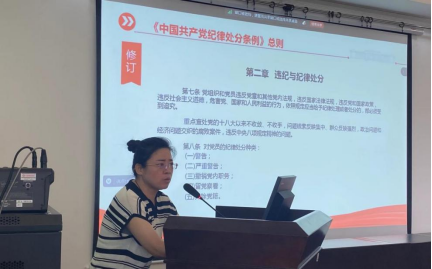 课上,胡锦玉从《条例》修订的现实背景和重要意义出发,强调了此次修订对于加强党的纪律建设、维护党的团结统一、推动全面从严治党向纵深发展的重要性。她指出,《条例》全面贯彻了习近平新时代中国特色社会主义思想和党的二十大精神,从党章这个总源头出发,坚持严的基调,坚持问题导向和目标导向相结合,进一步严明了党内政治纪律和政治规矩,为推进党的自我革命、实现民族伟业复兴提供了重要纪律保障。她通过用案释学、以案促学的方式,结合典型案例,围绕《条例》通知与总则部分的修订内容进行了详细讲解,包括纪律处分方面的新规定、新举措以及对于党员干部行为规范的新要求等。