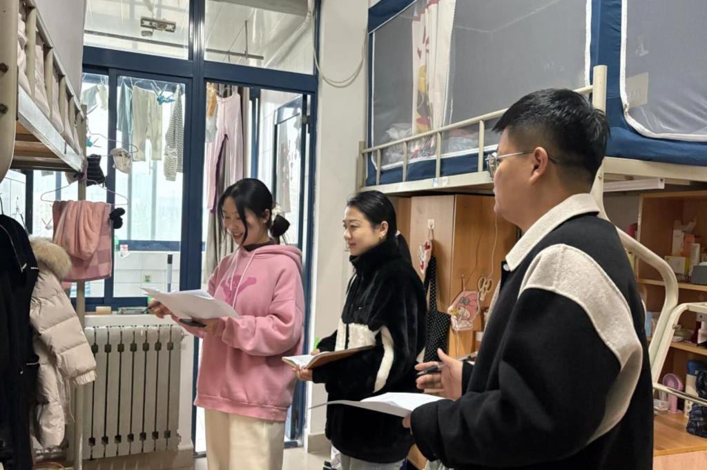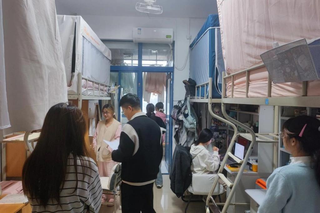 检查评选小组依据“文明宿舍”评比标准,重点围绕宿舍内务卫生、文化建设、用电安全以及成员精神风貌等多个维度进行了细致考察。检查过程中,老师们与同学们亲切交流,了解大家的日常生活与学习情况,提醒同学们自觉遵守住宿管理规定等学校各项规章制度,不私拉电线、网线,加强宿舍通风,必要时配合宿舍消杀工作或自行进行宿舍消杀,并对如何进一步优化宿舍环境、丰富宿舍文化给予了现场指导。