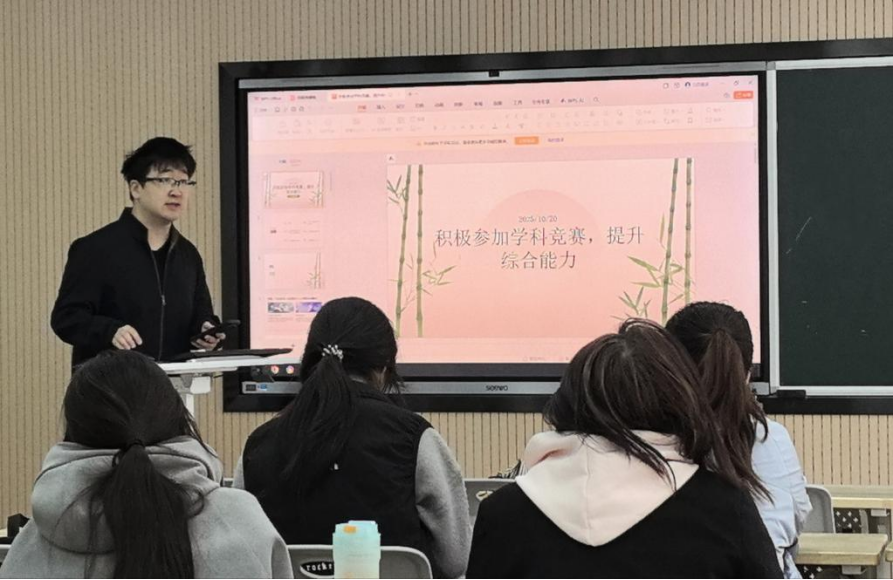 班会伊始,高超老师从大学学习的多维目标出发,阐述了学科竞赛在培养综合素质、锻炼创新思维和提升专业竞争力方面的重要意义。他指出,公共事业管理专业作为交叉性强、实践性高的学科,需要学生具备系统思维、社会调研能力与公共创新意识,而各类学科竞赛正是同学们展示才华与实现自我成长的重要平台。