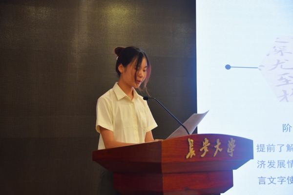 2022级中文系学生张欢歌作为学生代表进行了表态发言。张欢歌表示,推普周是短暂的,但是推普工作是长期的。希望未来能够发挥专业优势,将所学所用融入推普实践,助力推普事业蓬勃发展。