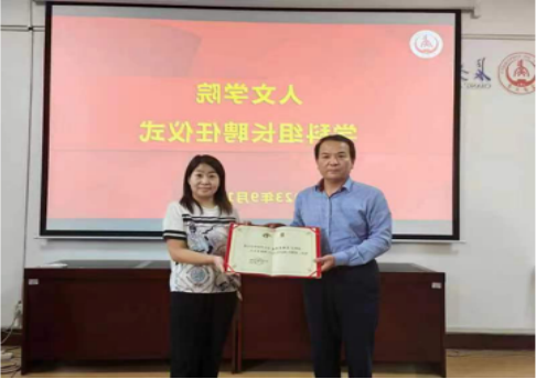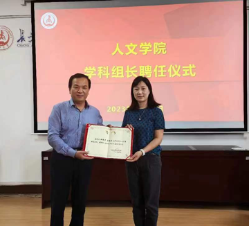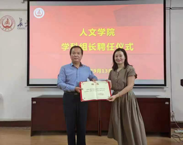 杜波首先宣读了《关于聘任taptap188平台学科(学位点)组长的决定》的文件。学院党委书记杜智民为公共管理学学科组长范丽莉、法学学科组长陈蓉、美学学科组长岳进、新闻与传播专业学位点组长张娜、国际中文教育学位点组长冀芳、艺术专业学位点组长张燕梅、艺术学科美术领域负责人钟耀萍颁发了聘书。
