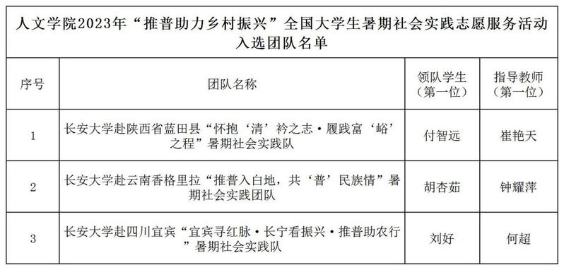 2023年“推普助力乡村振兴”全国大学生暑期社会实践志愿服务活动,由教育部语言文字应用管理司和团中央青年发展部联合组织开展。经过层层推荐、资料审核、专家评审等程序,最终确定1176支团队入选。