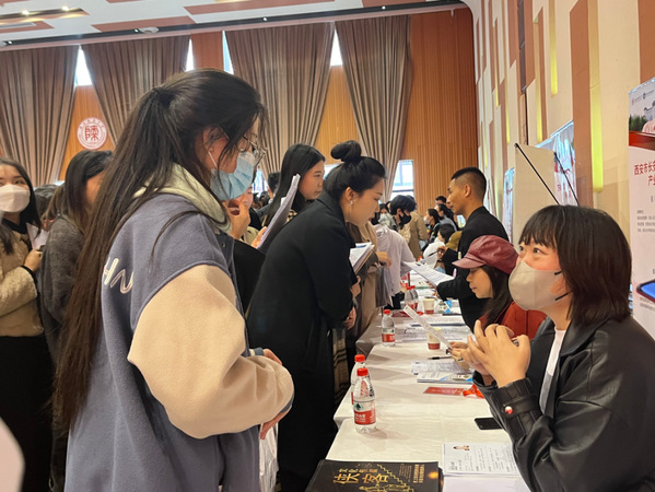 本次招聘活动邀请了包括人民网、中青网、中新社、陕报社、陕广电传媒、华商报社在内的全国近百家企事业单位参加。现场人头攒动,毕业生们积极主动投递简历并与用人单位沟通交流。参会老师及时询问学生求职进展,了解用人单位需求,根据毕业生情况向用人单位积极推荐,增进学生的入职机会。