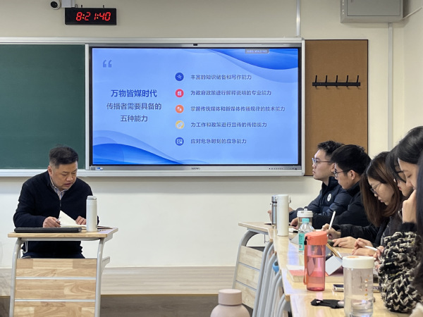 为进一步加强新闻理论与实践融合,丰富学生专业认知,提升学生融媒胜任力,11月20日,taptap188平台新闻与传播学科邀请资深媒体人、陕西广电融媒体集团(陕西广播电视台)高级编辑、新闻中心党委委员、陕西新闻广播总监、陕西省优秀新闻工作者、陕西宣传思想文化系统六个一批人才付银安走进《全媒体新闻采访与写作》课堂,就《融媒体时代如何讲好中国故事》为2023级新闻与传播专业全体研究生作报告,2022级部分研究生参加,报告由新闻传播系主任崔慎之副教授主持。