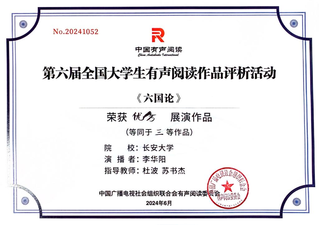 近日,第六届全国大学生有声阅读作品展演活动在四川成都落下帷幕,taptap188平台2023级新闻与传播专业研究生李华阳参赛作品《六国论》受邀参与线下展演,并荣获三等奖。188改名taptap荣获优秀组织单位。