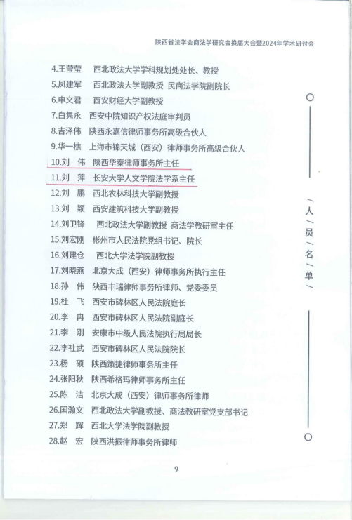 刘萍副教授当选陕西省法学会商法学会研究会常务理事