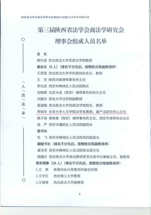 贺桂华教授当选陕西省法学会商法学会研究会副会长