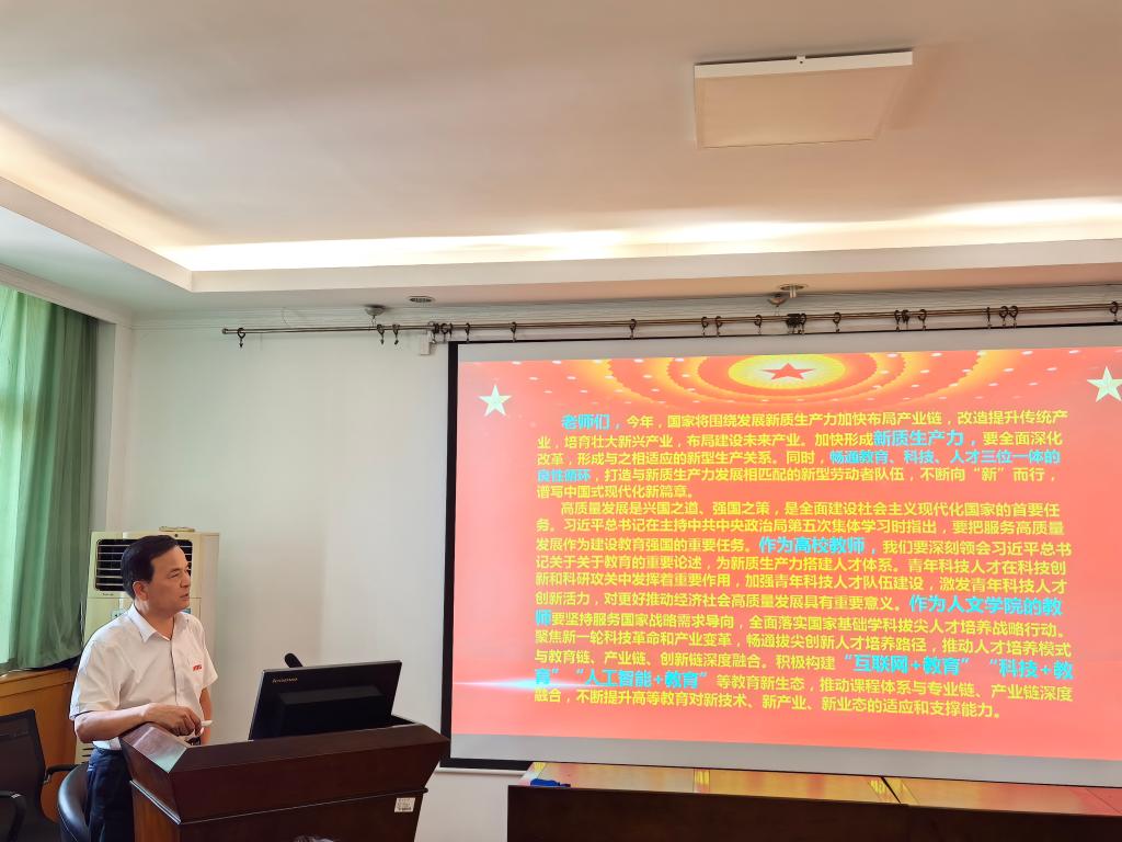 他从“党纪”、“规矩”、“数据”、“算力”、“高质量发展”等五个关键词入手,结合新质生产力,重点从当今世界的三大变革、我国数据要素产业发展现状与趋势、我国算力产业的发展态势等三个部分,为学院党员教师上了一场别开生面的党课。