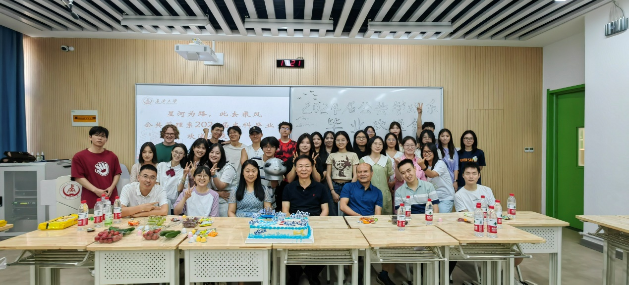最后,公共管理系为毕业学子们准备了精美的蛋糕,老师们和同学们同切蛋糕并进行合影留念,共同分享毕业的快乐,也祝愿师生情、同学谊绵远悠长。