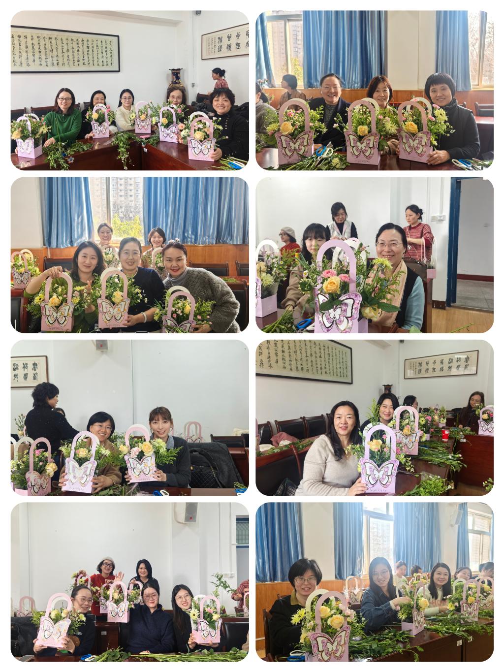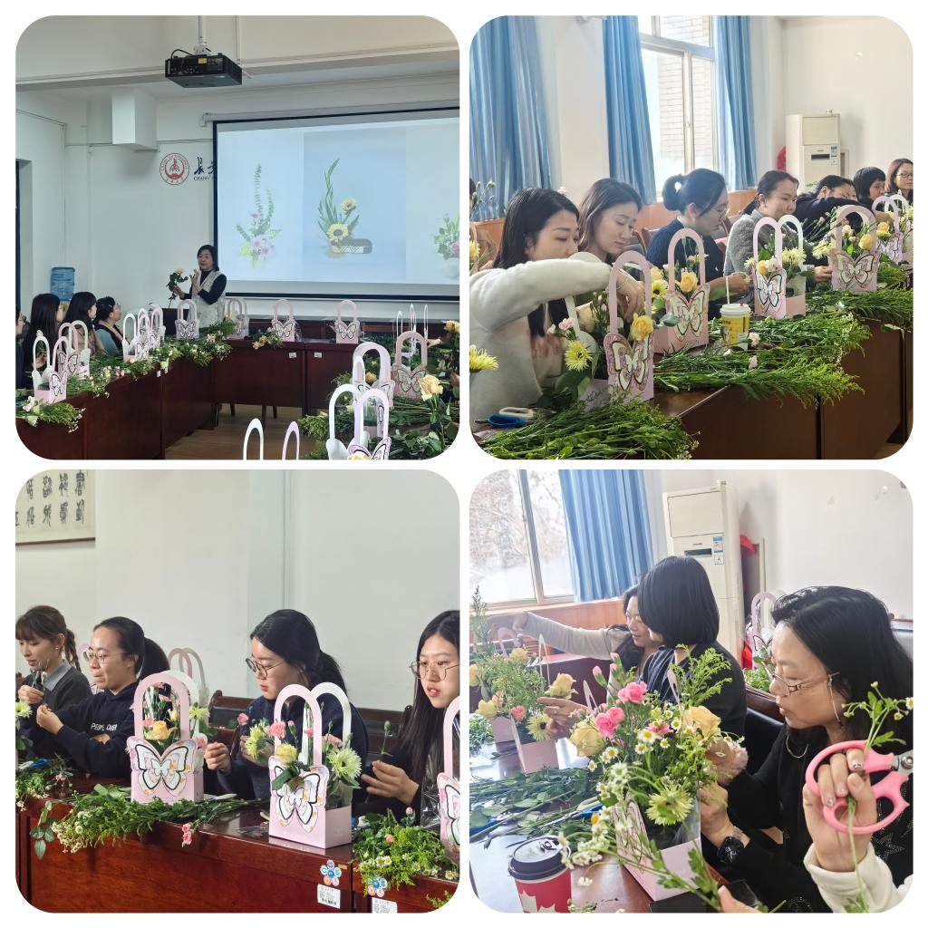 “插花如育人,既要把握整体格局,又要雕琢细节之美。”参加花艺创作的老师们边修剪花枝边分享感悟。活动现场特别设置“花香寄语”环节,女教职工在卡片上书写“愿化春泥护桃李”“三尺讲台绽芳华”等育人誓言,将满载心意的花篮赠予学生代表。