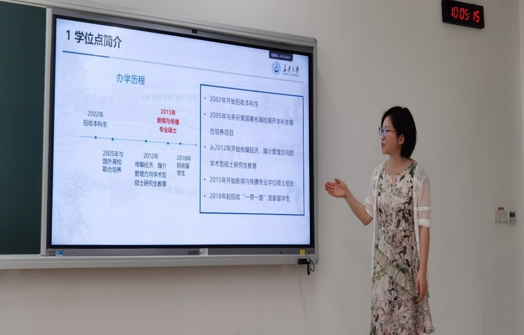 新闻与传播专业学位授权点组长张娜副教授对本专业进行了详细介绍。新闻与传播专业旨在打造全媒体时代的复合型人才,培养熟练掌握新闻传播基础理论、新媒体技术和新闻传播方法,能够适应社会新闻传播事业发展最新需求的高层次专业人才。培养采用校内课程学习与校外专业实践相结合的方式,采取学校导师与业界导师共同指导的“双导师”制。我院与陕西日报传媒集团、陕西广播电视台、西安广播电视台、西部网、陕西传媒网及多家广告公司签订了联合培养合作协议,特别着重培养学生在专业上的实际操作及创新能力。