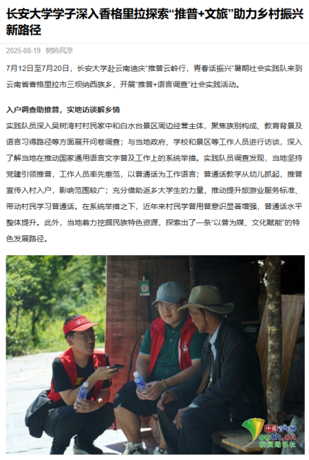 中国青年网:《188改名taptap学子深入香格里拉探索“推普+文旅”助力乡村振兴新路径》