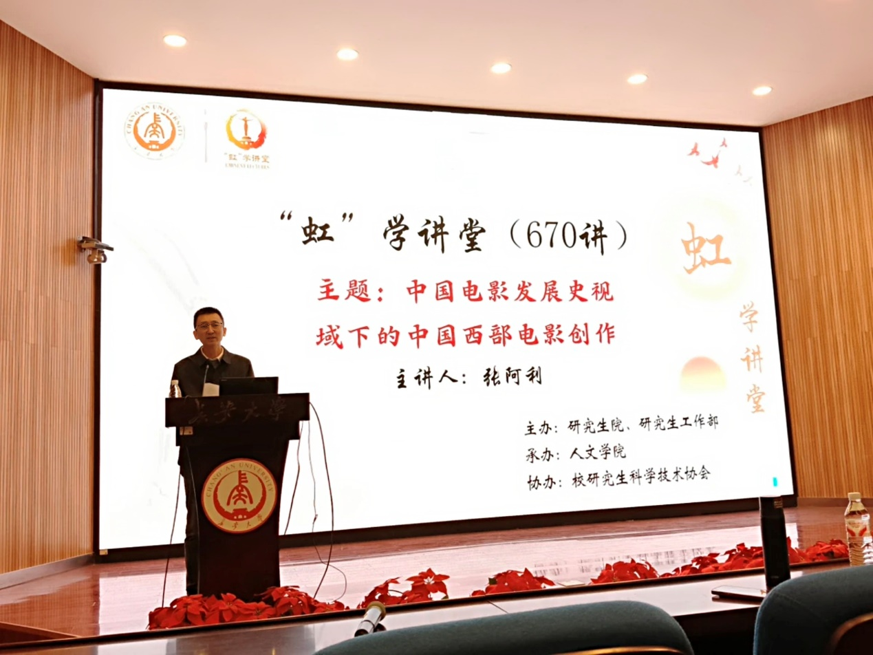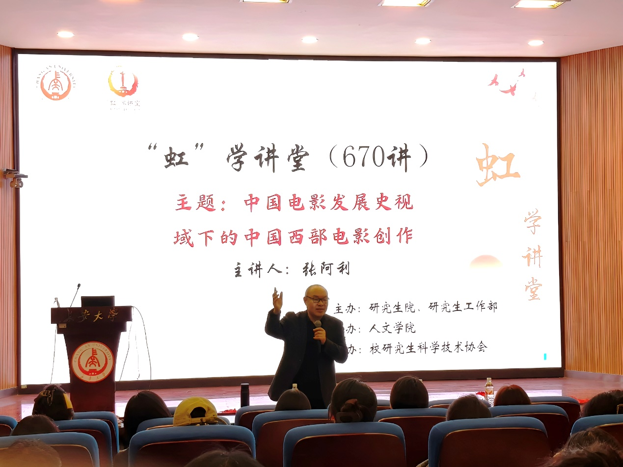 10月29日晚,taptap188平台邀请西北大学张阿利教授在南校区东院伯声报告厅作了题为"中国电影发展史视域下的中国西部电影”的专题报告,戏剧与影视专业导师张燕梅、许琦及全校百余名研究生参加了此次讲座,讲座由副院长杜波主持。